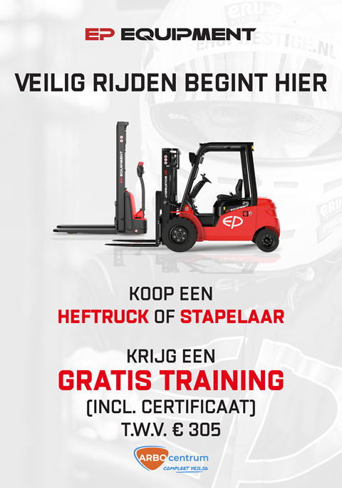 Veilig rijden begint hier! Koop vóór 31 december 2025 een EP Equipment heftruck of stapelaar bij Palletwagens.net en ontvang een gratis training (incl. certificaat) t.w.v. €305,-.