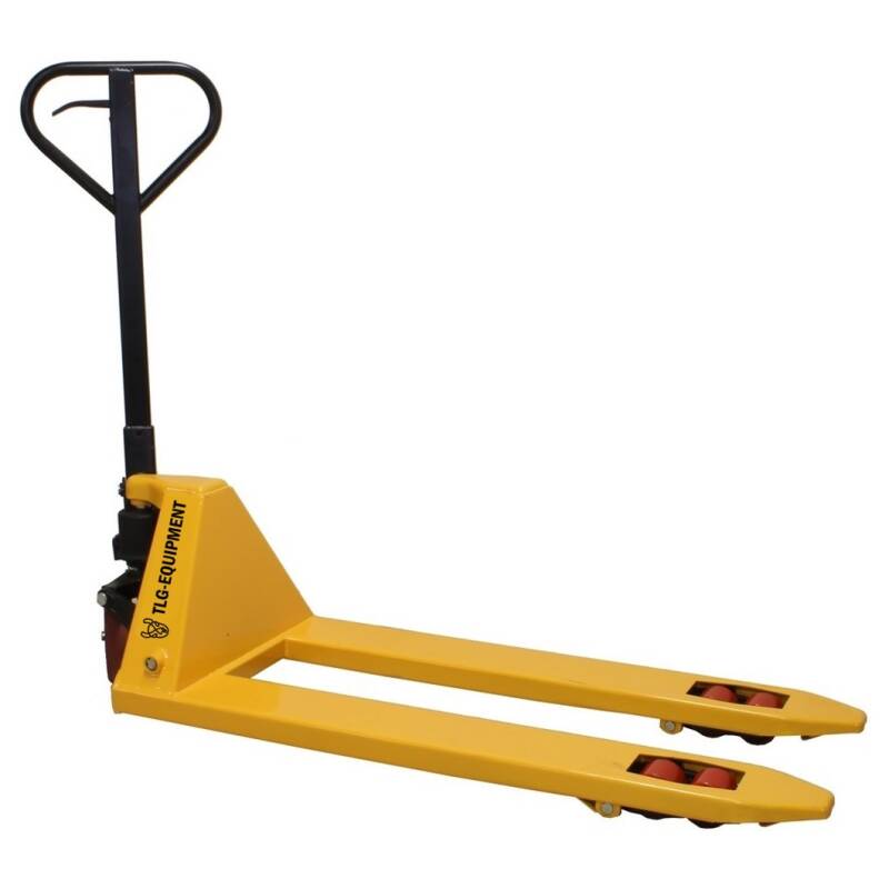 Of je het nu een Palletwagen, Pompwagen, Palletkar, Pompkar, Pallettruck of transpallet noemt. Deze stalen palletwagen van industriële kwaliteit is geschikt voor dagelijks gebruik en staat garant voor een lange levensduur. De palletwagen is uitgerust met een dubbel voorwiel ontwerp dat de mobiliteit verbetert, zelfs bij zware belastingen. De stalen hydraulische unit zorgt voor soepel tillen en nauwkeurige controle tijdens gebruik. Met een hefvermogen van 2500kg en een vorklengte van 1150mm kan deze palletwagen zelfs de zwaarste lasten gemakkelijk aan. Het wielmateriaal gemaakt van PU zorgt voor een comfortabele, soepele rit zelfs op ruwe oppervlakken, tevens is het weerbestendig en geruisloos.