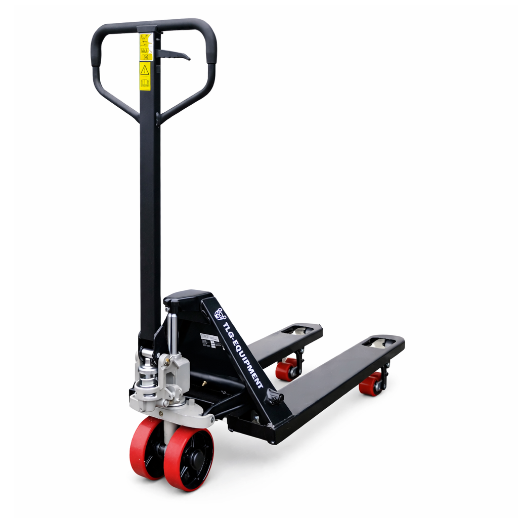 Of je het nu een Palletwagen, Pompwagen, Palletkar, Pompkar, Pallettruck of transpallet noemt. Deze stalen palletwagen van industriële kwaliteit is geschikt voor dagelijks gebruik en staat garant voor een lange levensduur. De palletwagen is uitgerust met een dubbel voorwiel ontwerp dat de mobiliteit verbetert, zelfs bij zware belastingen. De stalen hydraulische unit zorgt voor soepel tillen en nauwkeurige controle tijdens gebruik. Met een hefvermogen van 2500kg en een vorklengte van 1150mm kan deze palletwagen zelfs de zwaarste lasten gemakkelijk aan. Het wielmateriaal gemaakt van PU zorgt voor een comfortabele, soepele rit zelfs op ruwe oppervlakken, tevens is het weerbestendig en geruisloos.